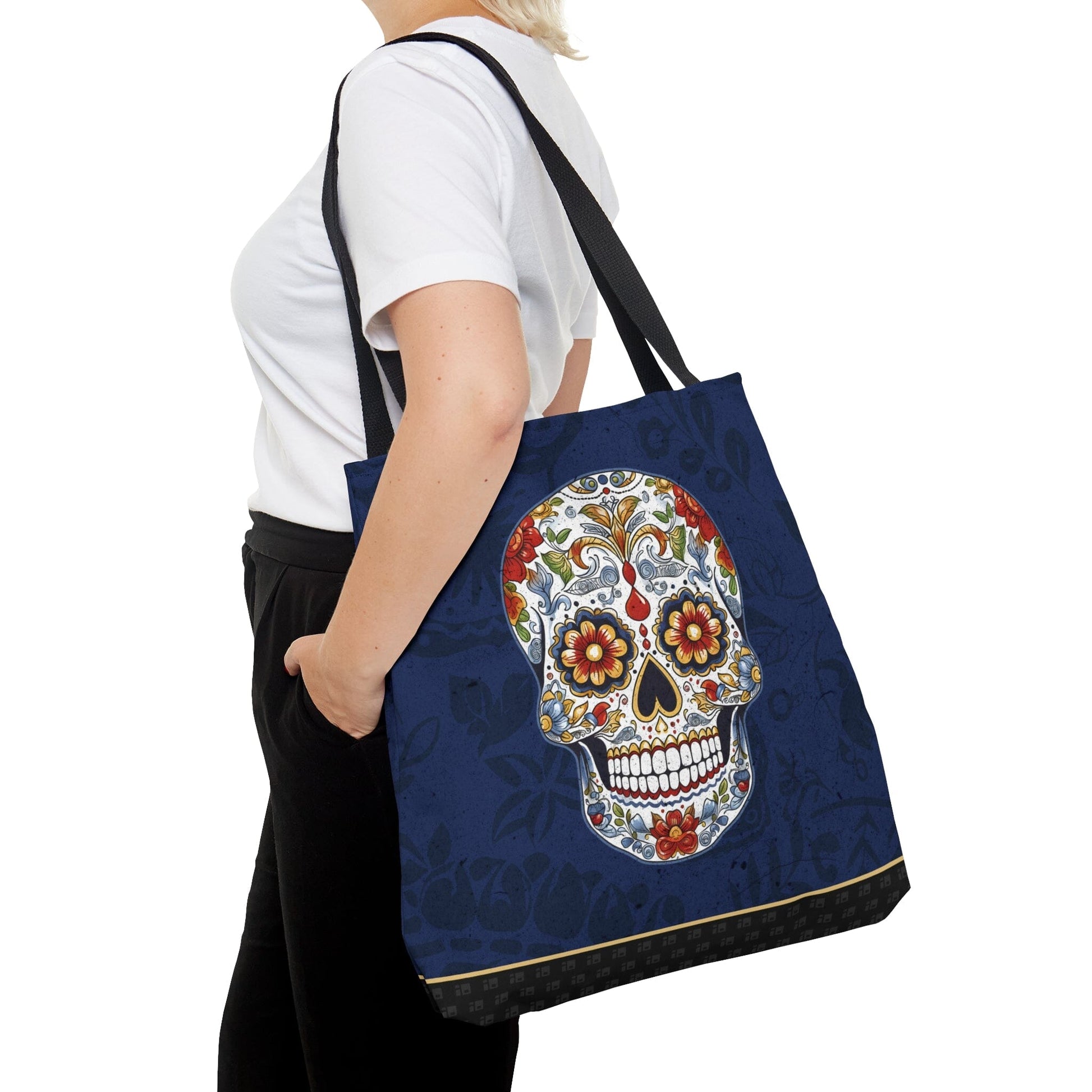 Mexican Sugar Skull Tote Bag - Vibrant, Colorful Day of the Dead Artistic Bag